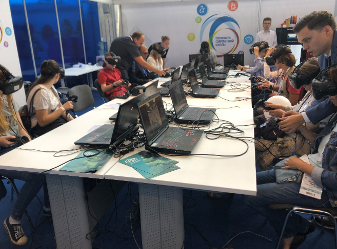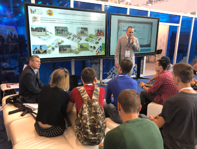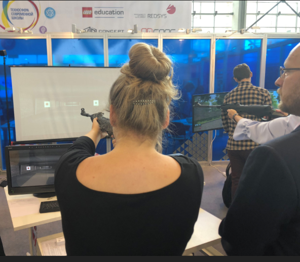 I was not surprised to see a large government/military presence at the conference. I knew that Russia has a conscription military and I learned Russian students start to gain military experience at around nine. What did surprise me about their presence at the conference, though, was two fold: The first is how heavily they’ve invested into edtech. The Russian government has funded or created a variety of edtech products used in schools that were on display at the conference. Virtual reality job-skills training software was popular, but by far the most popular edtech put forth was military focused. There were easily a dozen edtech products that focused on military life and training. There were augmented reality shooting ranges, virtual reality special forces training, and even VR “games” that taught how to (dis)assemble military weapons, hardware, and even fix vehicles.
