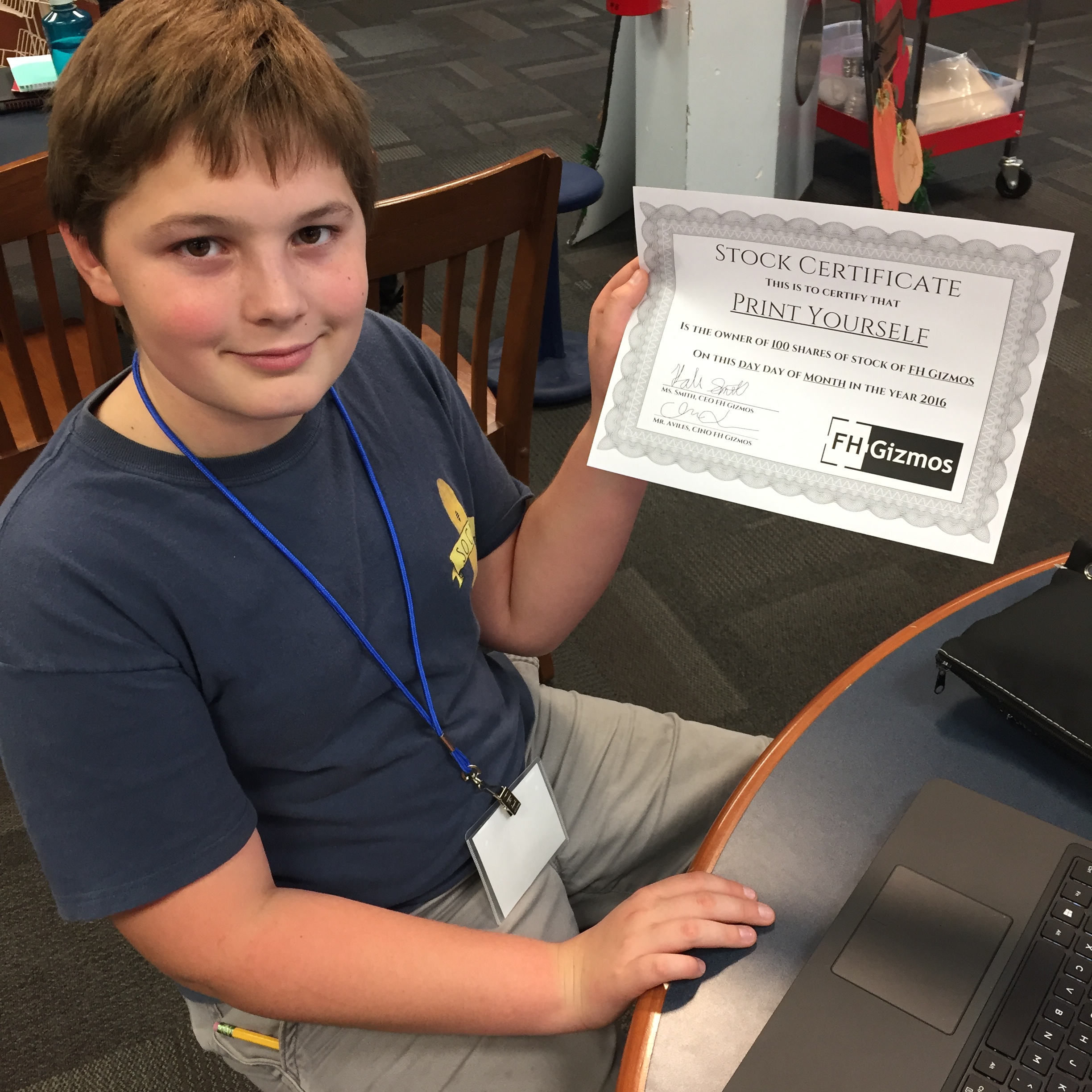 Entrepreneurship and Narratives. More motivating than competition, narratives are great to insert into the Makerspace. Our narrative invokes pride in ownership and all the lessons and learning that comes with running a business because we’ve brought entrepreneurship to the Innovation Lab. In the Innovation Lab, students can sell their creations on FH Gizmos, our student-run school store. I made the store not only to expose students to entrepreneurship, but to also motivate them to finish more designs. When we talk about FH Gizmos with students, we talk about it as if we are part of a startup. Students who open a store on FH Gizmos are given a stock certificate which entitles them to vote at the share holders meeting; the meeting where we decide how we get to spend the profit we’ve made. Students also earn “commission” on what they sell. They can use the commission to buy things from FH Gizmos. By trying to make the experience of running their FH Gizmos store as authentic as possible, we’ve wrapped the experience in a narrative where students feel like they are part of a real business. Anytime you can add a story, or even better, an authentic narrative to the works students are doing, they’ll be more motivated to participate.
