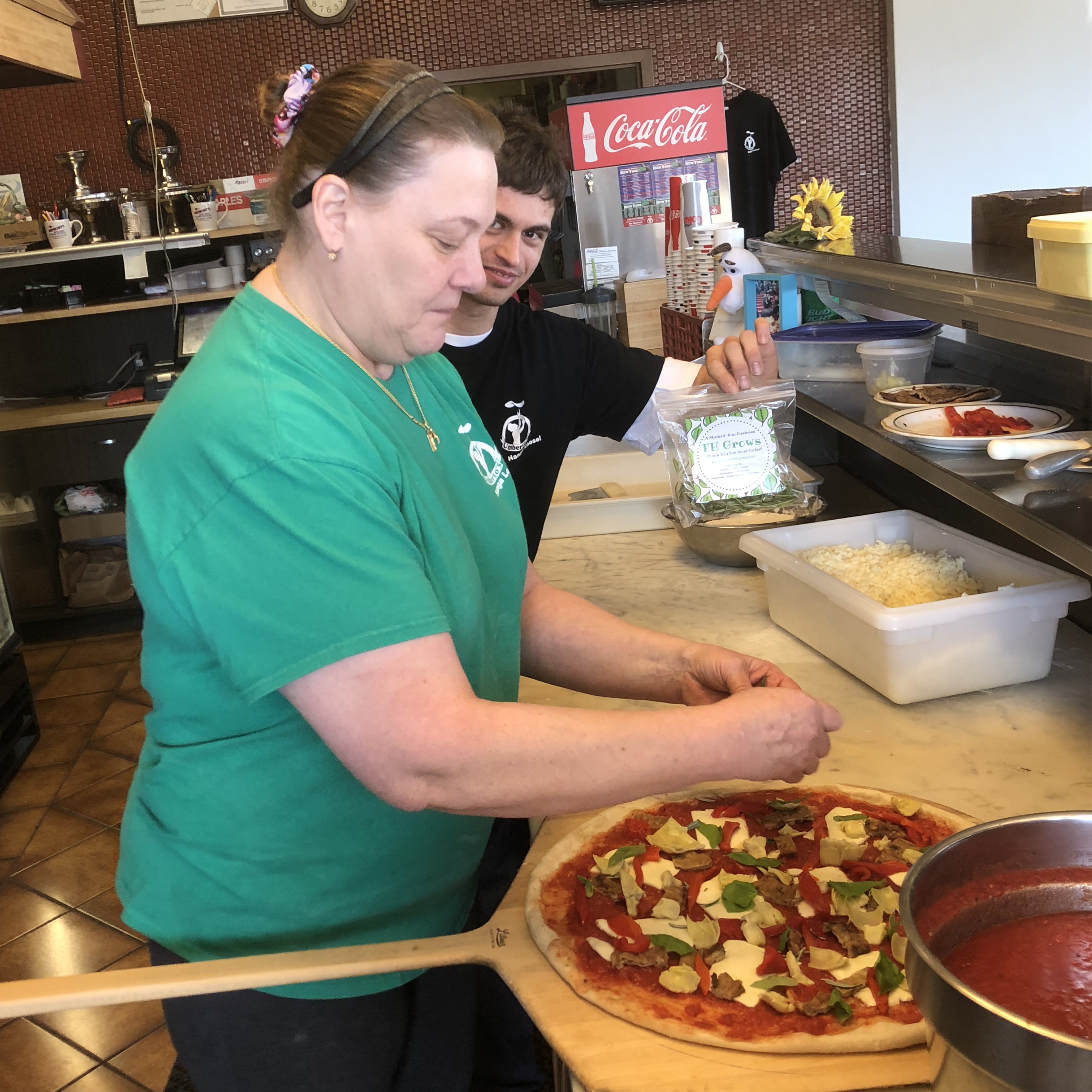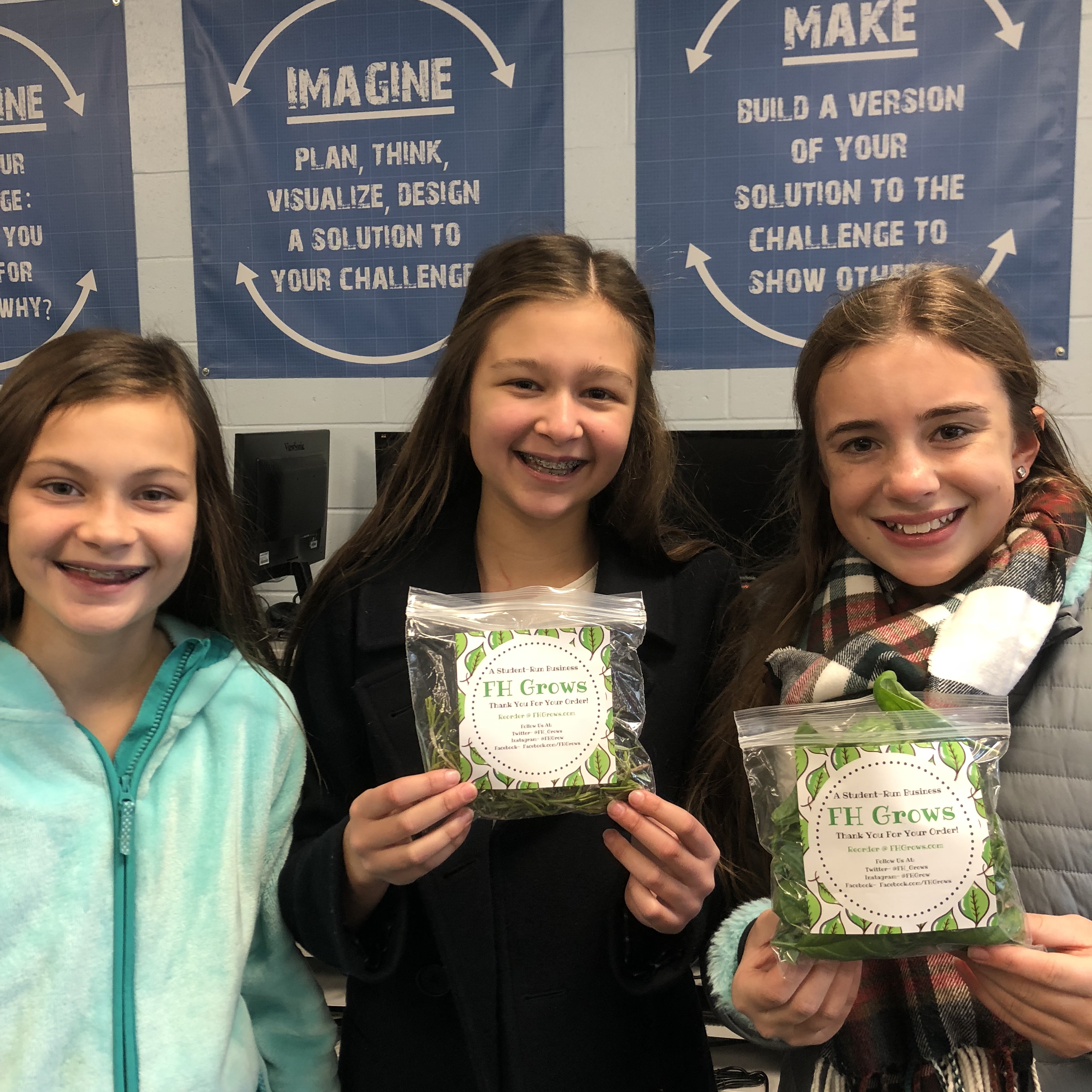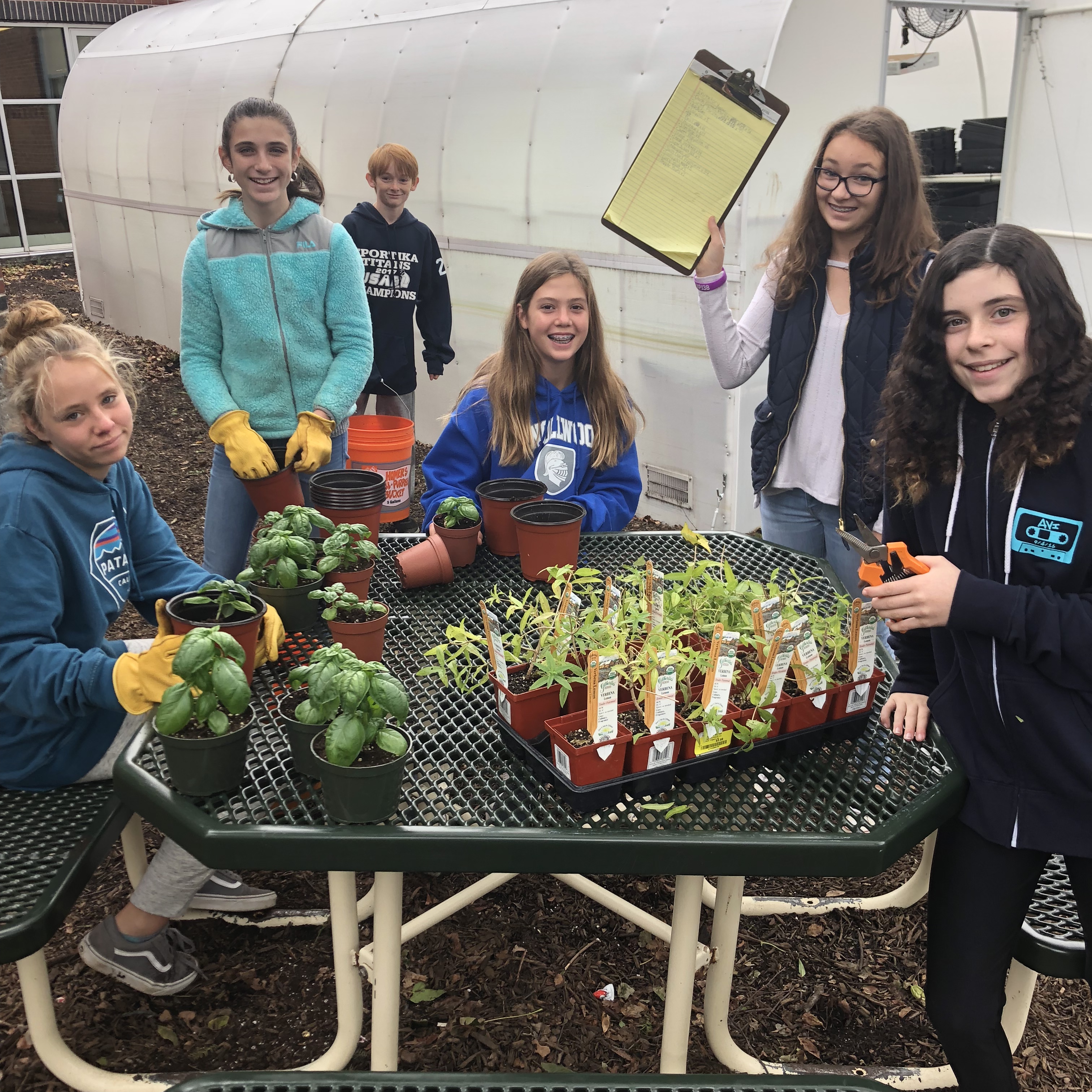 After our produce is harvested, we bring some of it to market. I own an edtech business and help run another, but selling produce is a world apart from working in edtech. Enter Molly Gearty, a certified horticulturist, and her wonderful crew at our town’s local nursery Sickles Market. They have been amazing in helping us learn the ins and outs of selling plants for profit. With her support, FH Grows just broke $100 in sales and landed our local pizza place, Umbertos, as our first client. Umbertos orders from us weekly, and is only using FH Grows herbs in all their dishes! They’ve even asked us to name their new pizza creation that uses all of our school-grown ingredients. Without understanding how to prep, package, and care for our plants set to be sold, we wouldn’t be as successful as we are starting to become.
